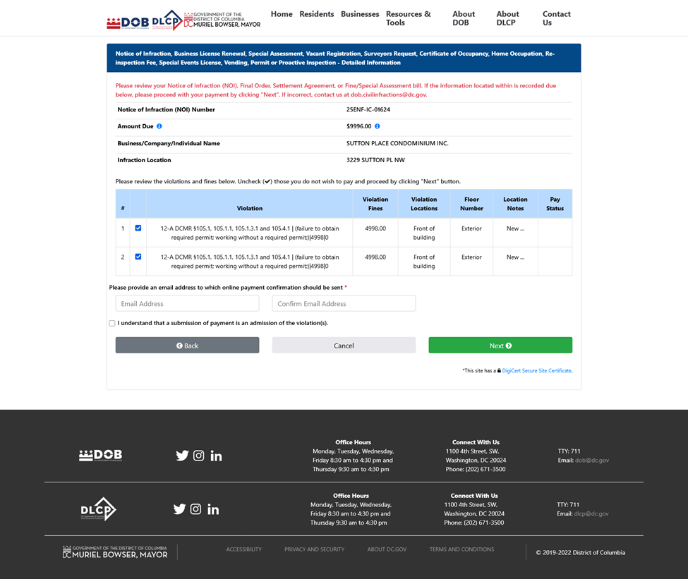 Let’s not forget about the $10,000 fine charged to our Association by the DC Government (see below) for failure to obtain the proper permits when they were doing the waterproofing repair on my building’s foundation. This has been pending for many months now and will stay until the DC Office of Administrative Hearings (OAH) makes a final decision on the matter. Not just another example of the incompetence of our Board and Comsource, but of their endless hypocrisy when they complain about high legal fees; I guess unnecessary fines don’t count.